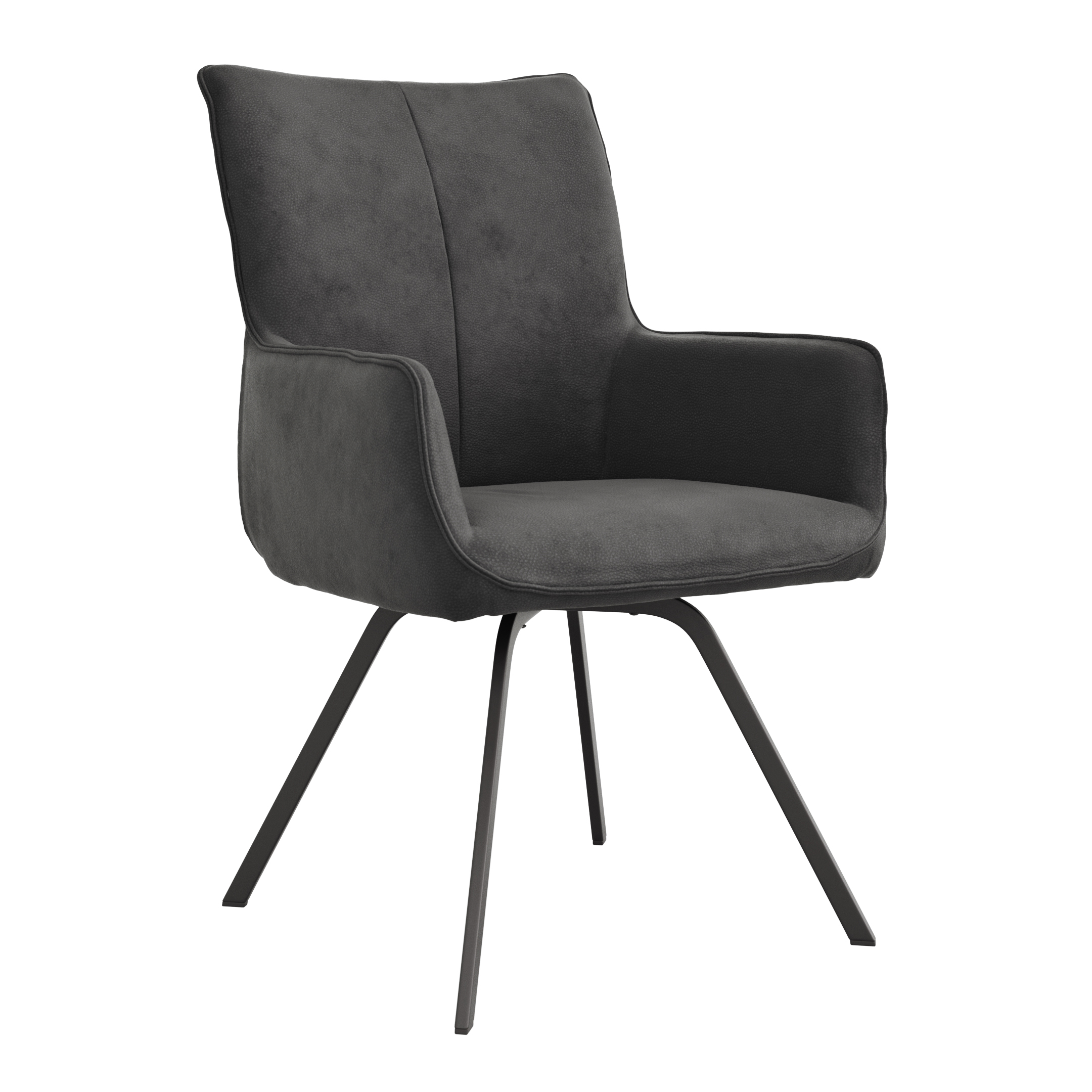 Erlebe den Komfort des Armlehnstuhls Calyra von Natura Home. Mit einer Belastbarkeit von ca. 130 kg bietet er stabile Unterstützung und eine angenehme Sitzhöhe von ca. 48 cm. Der anthrazitfarbene Stoff verleiht deinem Raum ein elegantes Flair, während die schwarzen, aus Stahl gefertigten 4-Fuß-Gestelle für einen modernen Look sorgen. Der Stuhl vereint stilvolles Design mit hoher Funktionalität und passt perfekt in jedes Zuhause.