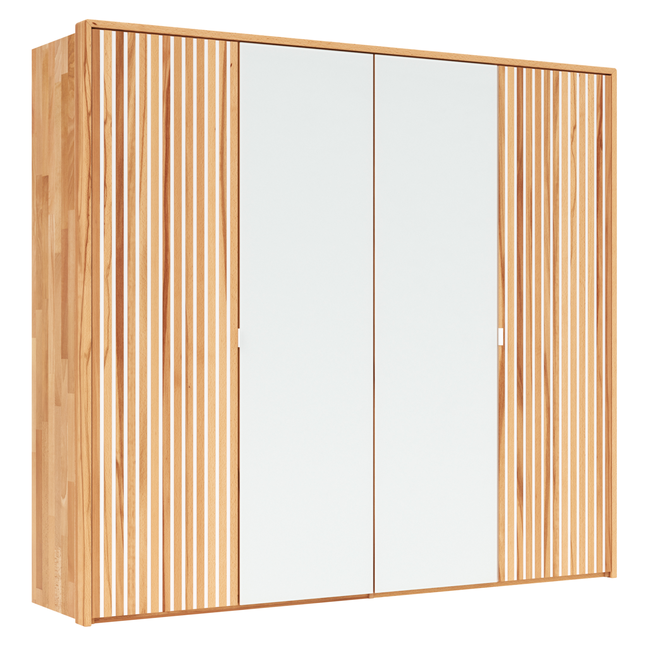 Der Drehtürenschrank Tigris von Natura Home ist ein wahres Highlight für dein Schlafzimmer. Mit einer Breite von ca. 245 cm, einer Höhe von ca. 219 cm und einer Tiefe von ca. 60 cm bietet er großzügigen Stauraum. Gefertigt aus massivem, geöltem Kernbuchenholz, überzeugt er durch seine natürliche Optik und Langlebigkeit. Die Griffleisten aus weißem Metall fügen sich harmonisch ins Design ein und sorgen für ein modernes Erscheinungsbild. Vier Türen mit Dämpfung garantieren ein sanftes und geräuschloses Schließen. Ein Passepartout rundet das Gesamtbild ab und verleiht dem Schrank eine exklusive Note.