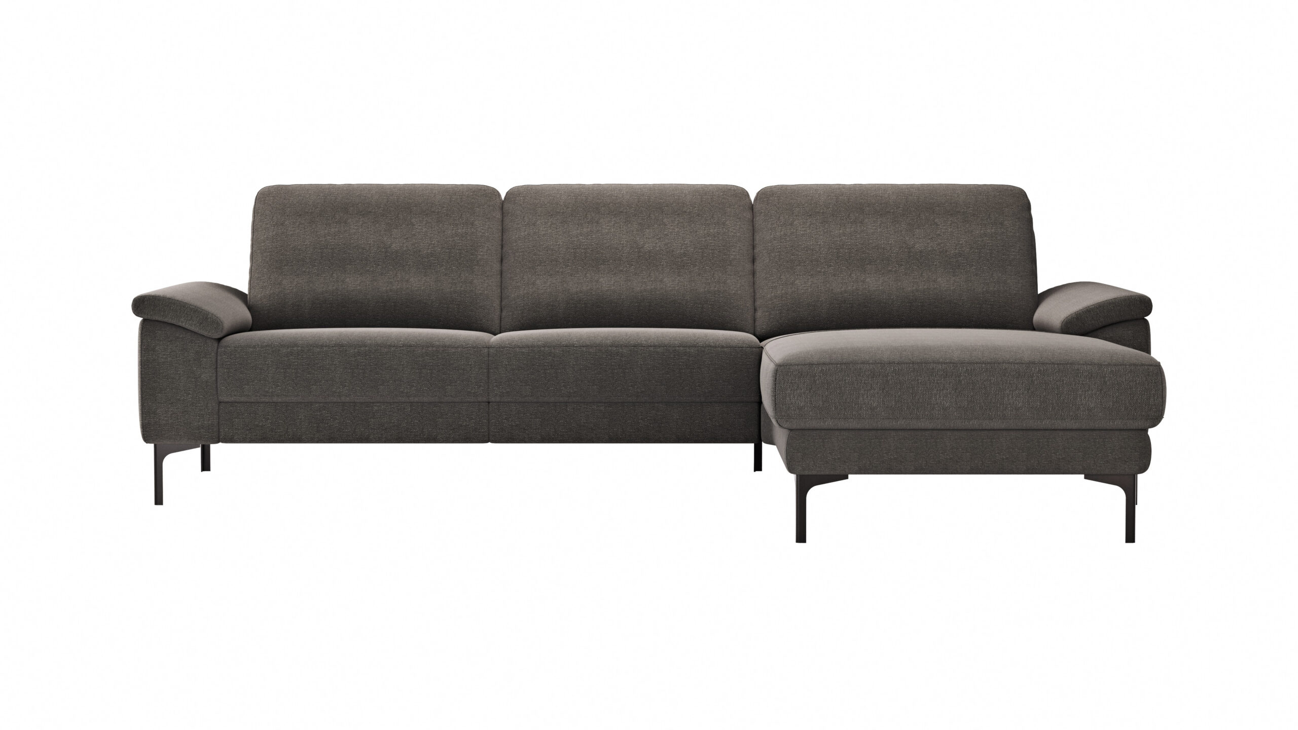 Bezug: Stoff Carmen 18 dark brown PG.IV, Füße: MF1, Rückenoptik A, bestehend aus: 2,5-Sitzer AT. links, mit motorischem Sitzauszug und Longchair AT. rechts, mit motorischen Relaxfunktion