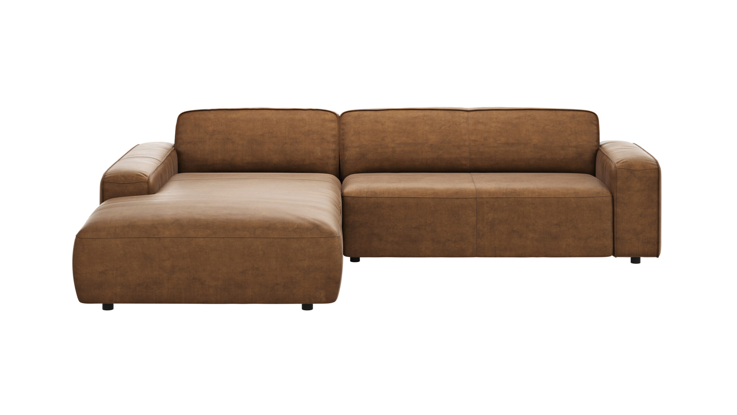 Bezug: Stoff Bull I ML(T) 09 camel, Stoffgruppe V, Textilkennzeichnung: 96% Polyester, 4% Polyethylen, Füße: Kunststofffüße bestehend aus: Longchair mit Armlehne links 2,5 Sitzer mit Armlehne rechts
