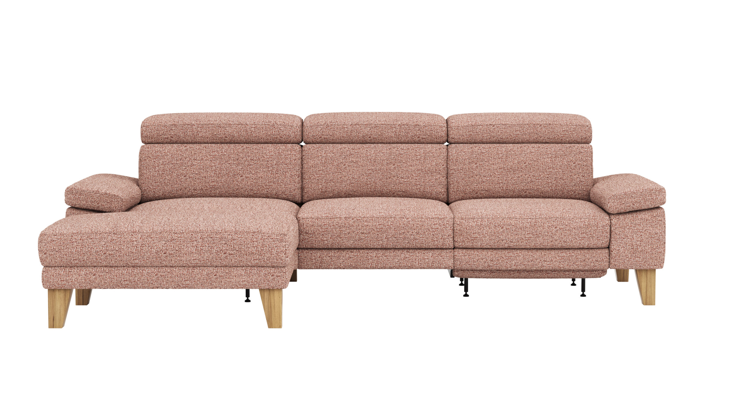 Das Ecksofa Hudson von Natura Home bietet Dir mit einer Sitzhöhe von ca. 46 cm optimalen Sitzkomfort. Es ist mit einer motorischen Relaxfunktion ausgestattet und hat eine verstellbare Kopfteil/Armlehne. Der 2,5-Sitzer mit Longchair links ist in einem attraktiven Kupfer-Stoff gehalten. Die Füße sind in einer Holzfarbe gehalten und konisch geformt, aus massiver Eiche gefertigt. Der Sitz besteht aus Diolenwattenabdeckung, HR-Schaum, Schaumstoff und Stahlwellenfedern, während die Rückenlehne mit Diolenwattenabdeckung, Gummigurten und HR-Schaum gestaltet ist.