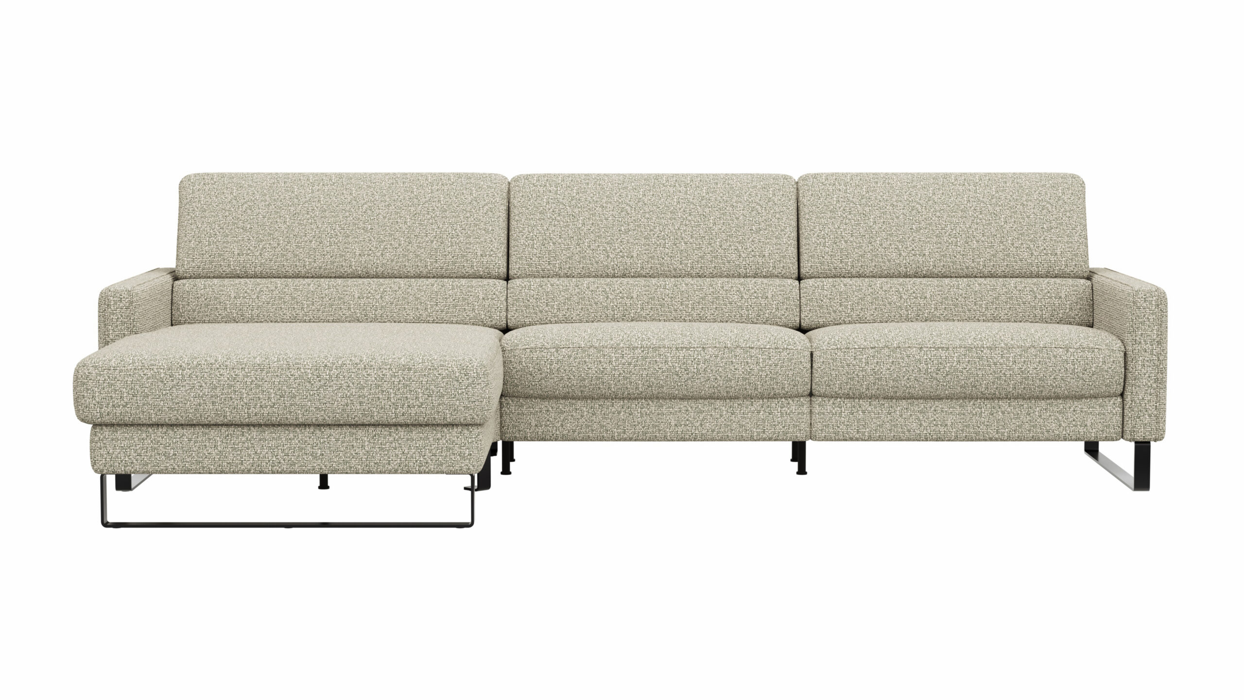 **Ecksofa Valera - Longchair mit 3-Sitzer rechts inkl. Rückenlehne verstellbar, Stoff, Limone**