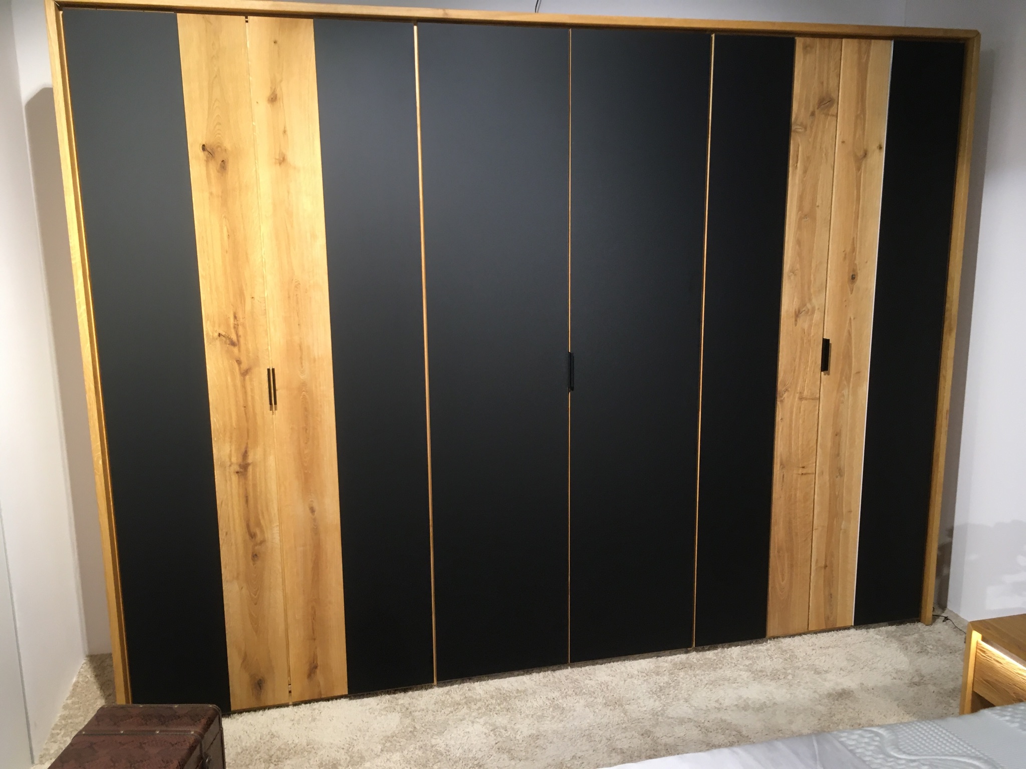 Holztürbereiche gefertigt in Wildeiche geschroppt, Mittig 2 x Glastür,
