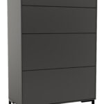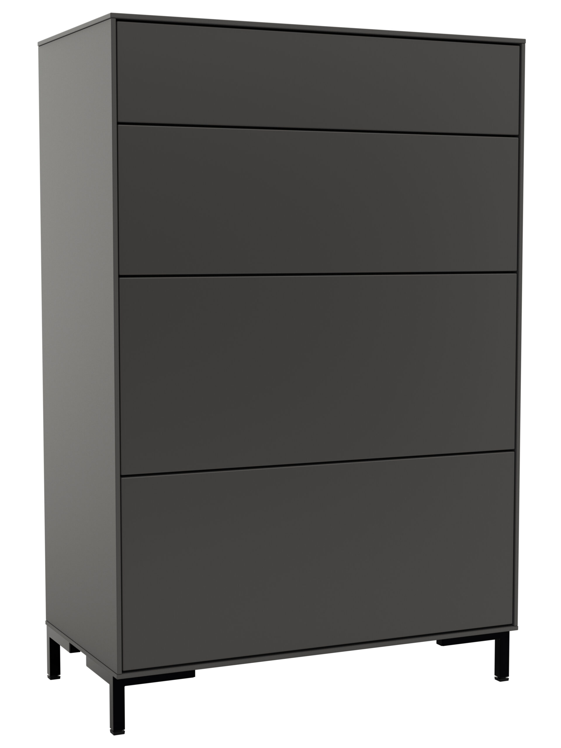 Die Kommode Medio von Global Family ist ein echter Hingucker in Schiefergrau. Mit einer Höhe von ca. 116 cm und einer Tiefe von ca. 41 cm bietet sie genügend Stauraum für all deine Habseligkeiten. Die vier Schubladen sind grifflos und öffnen sich durch einfaches Drücken (Push to Open), was für eine moderne, minimalistische Optik sorgt.